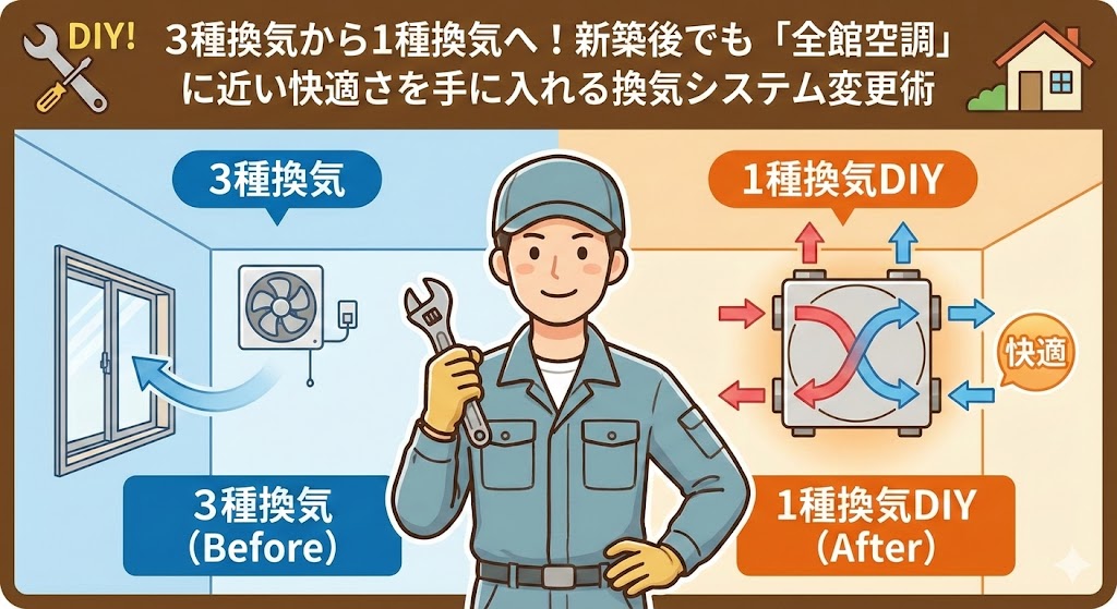 【DIY】3種換気から1種換気へ!新築後でも「全館空調」に近い快適さを手に入れる換気システム変更術