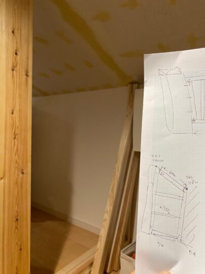 ざっくりとした設計図を手書きして、ホームセンターで木材を買ってきてスタート。