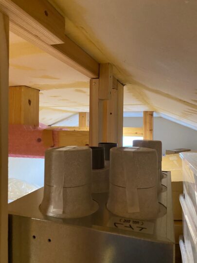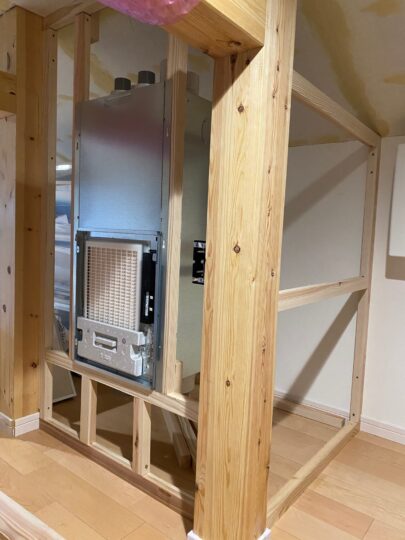 小屋裏部屋の空きスペースに、換気システム本体の設置をするためのボックスを作ります。