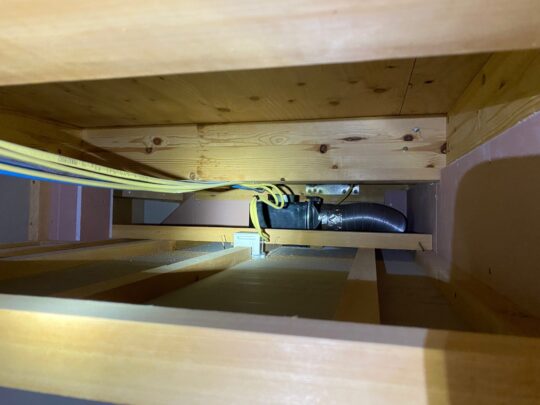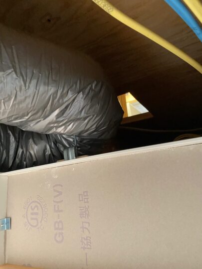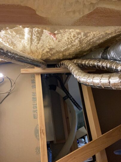 小屋裏空間は、高さが140cmしかないので、給気ダクトを挿し込むのにギリギリでした。