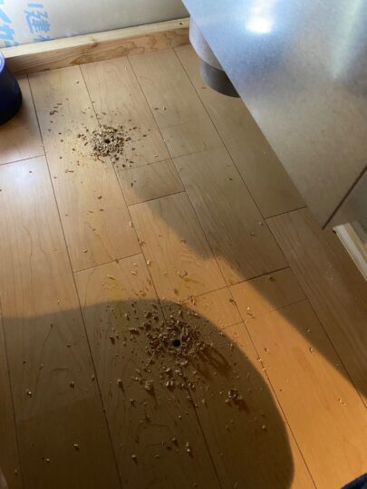 小屋裏の床に穴をあけ、外気からの給気と外気への排気ダクトをつなげるように準備します。