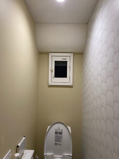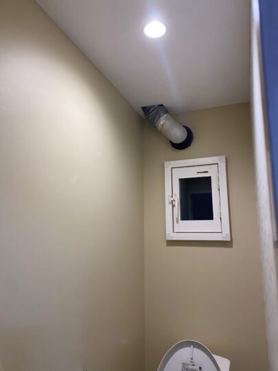 - 排気ルート: 既存のトイレの排気口(100Φ)を活用して外へ逃がす仕組みを構築しました。