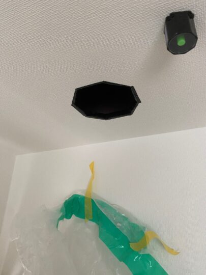 各部屋の天井に穴をあけて、給気グリルを設置します。