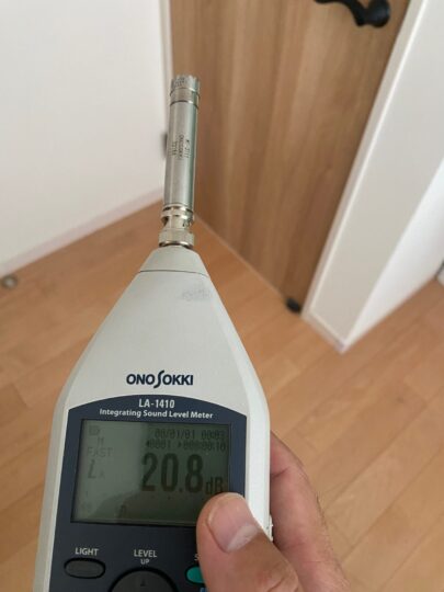 騒音値で5dBってたいして変わらなそうなんですけど、30dB以下になるとほぼ聞こえないレベルで、音の質も高音域がしっかりと消えています。