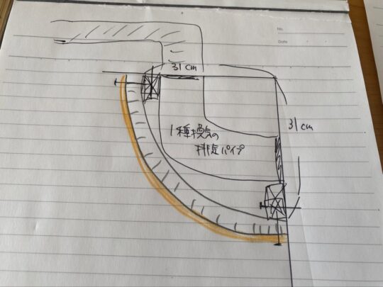 Rのかかった半円型の壁にして、排気ダクトを完全に隠します。