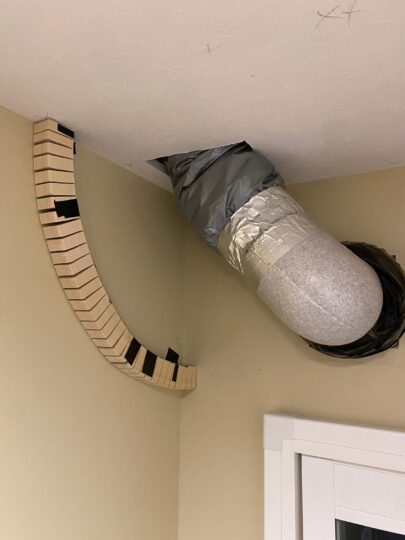 ダクトの出口を小屋裏に引っ張って変更。