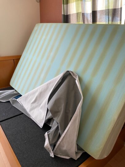 ウレタンフォームに染み付いたカビの臭いは、表面を拭いた程度では絶対に取れません。生活臭は表面の比較的厚いカバーを洗うことで取れますが、本体から発生するファブリーズを一本使い切る勢いでかけましたが、マットカバーを超えて漂ってくる匂いレベル。結局、そのマットレスは一度も使うことなく、市の燃えるゴミ集積場に持ち込み、泣く泣く処分することになりました。まさに「安物買いの銭失い」です。
